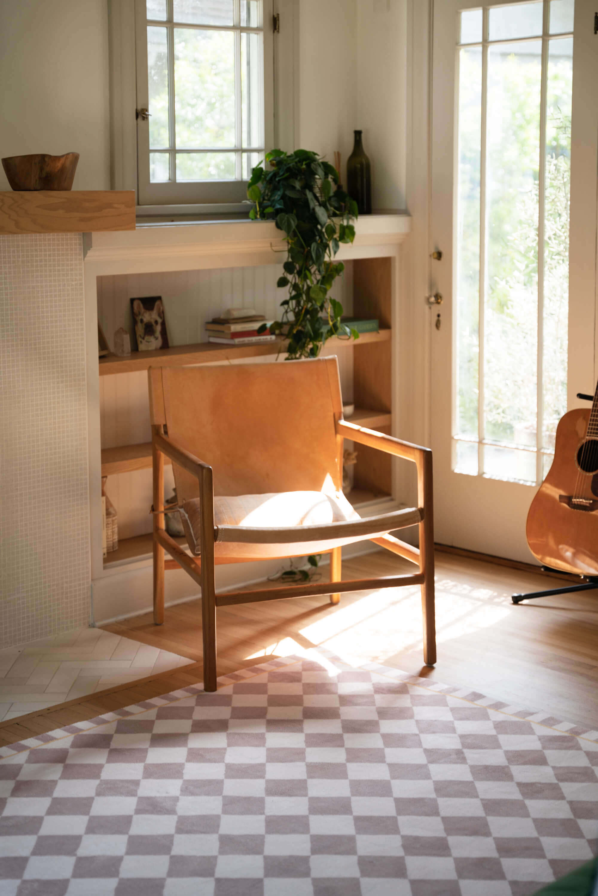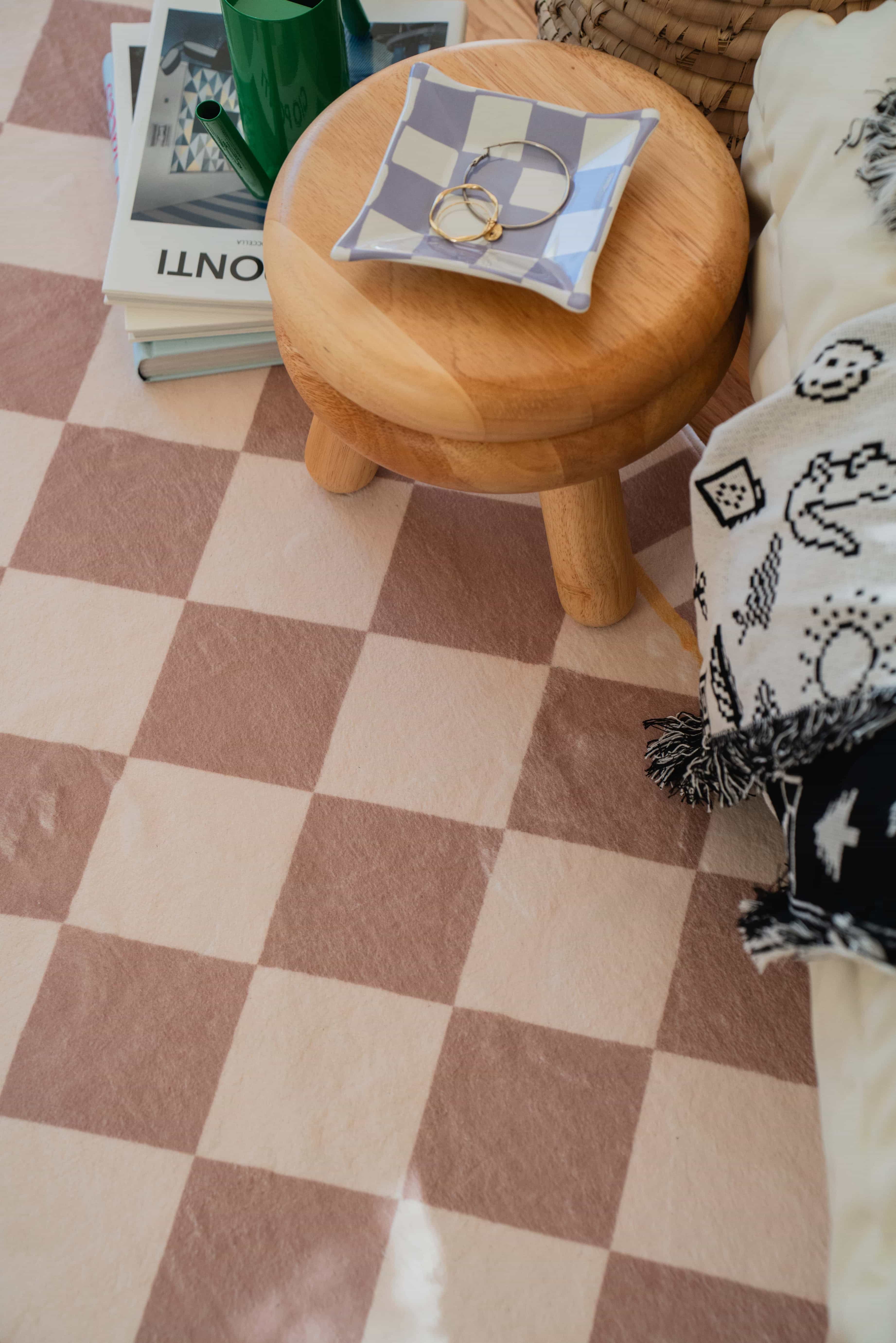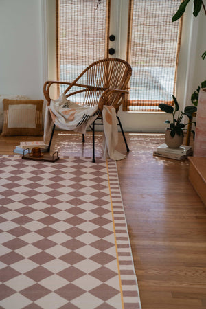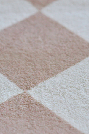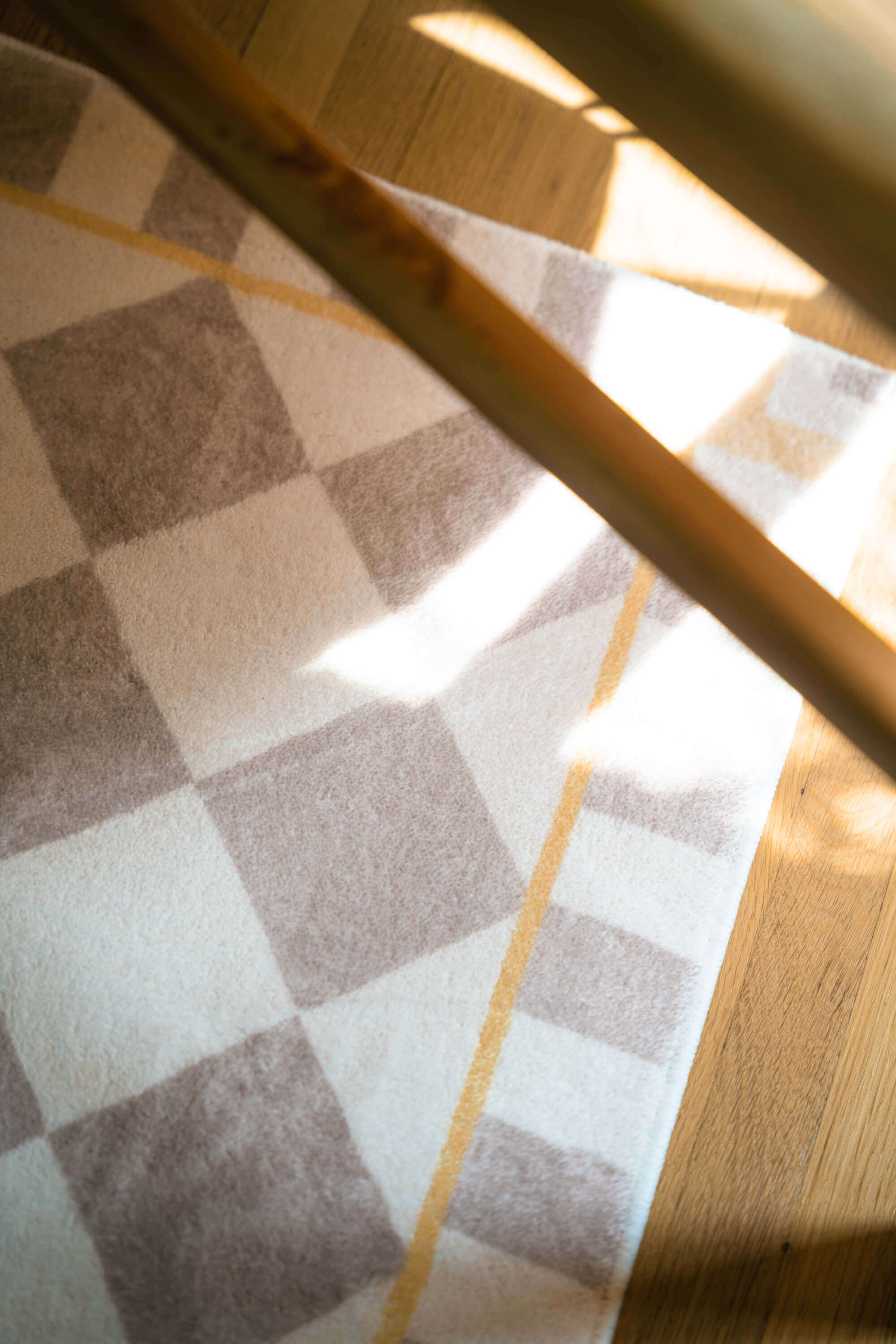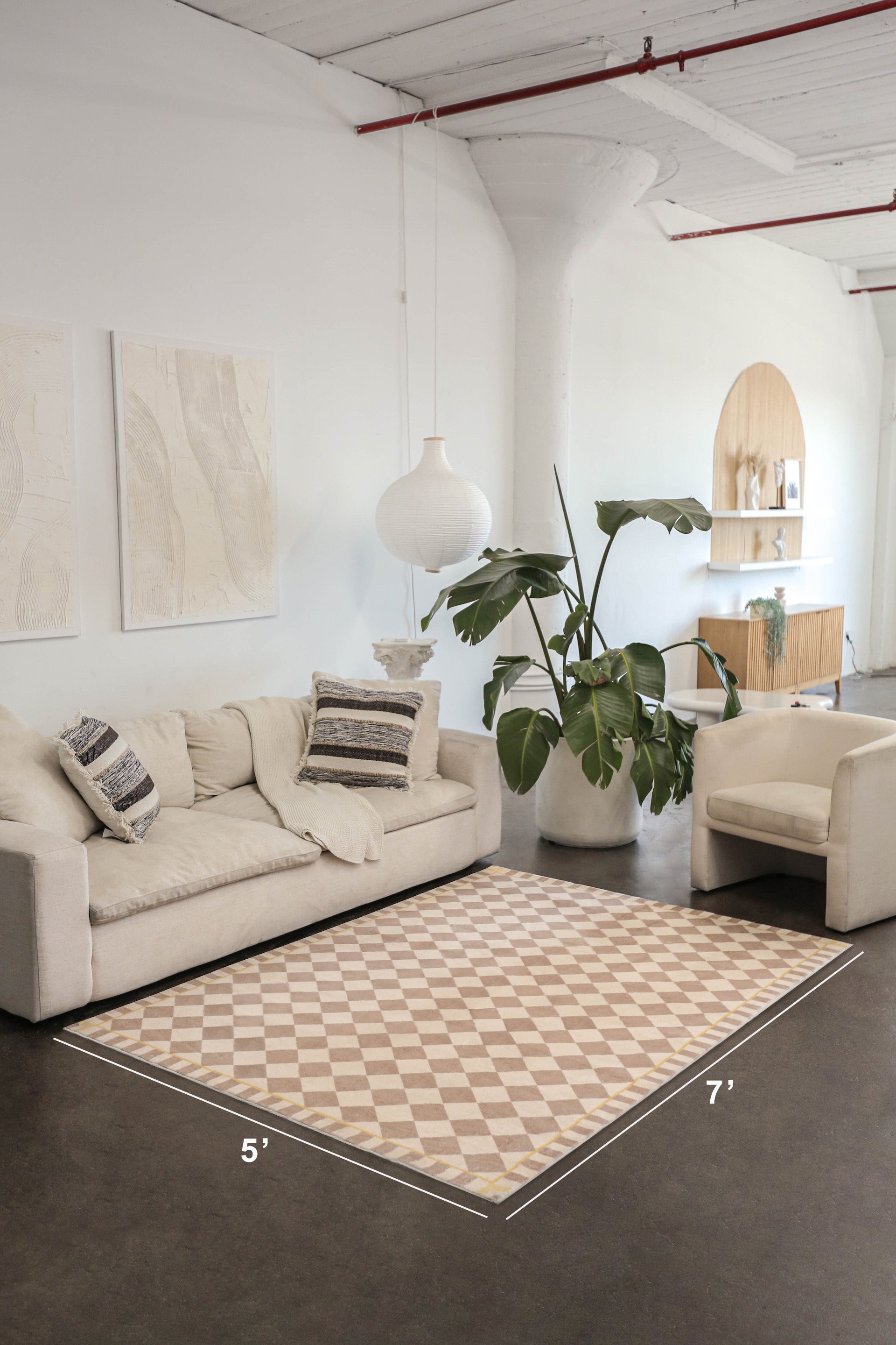 Enhance your space with this pet-friendly, geometric rug featuring a timeless beige diamond-checkered pattern. The intricate arrangement of diamond shapes adds visual interest and sophistication to any room—an ideal choice for those seeking a versatile and practical addition to their home decor.
