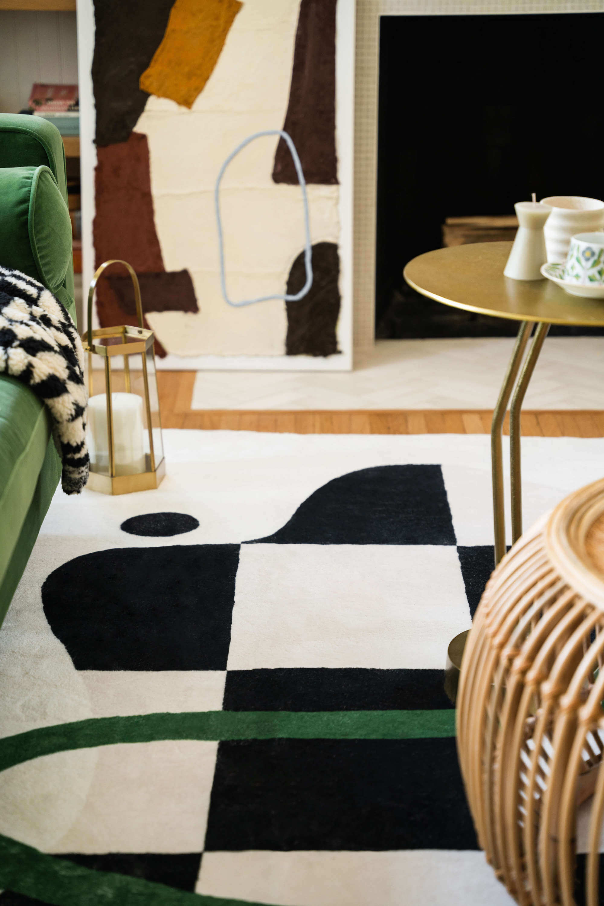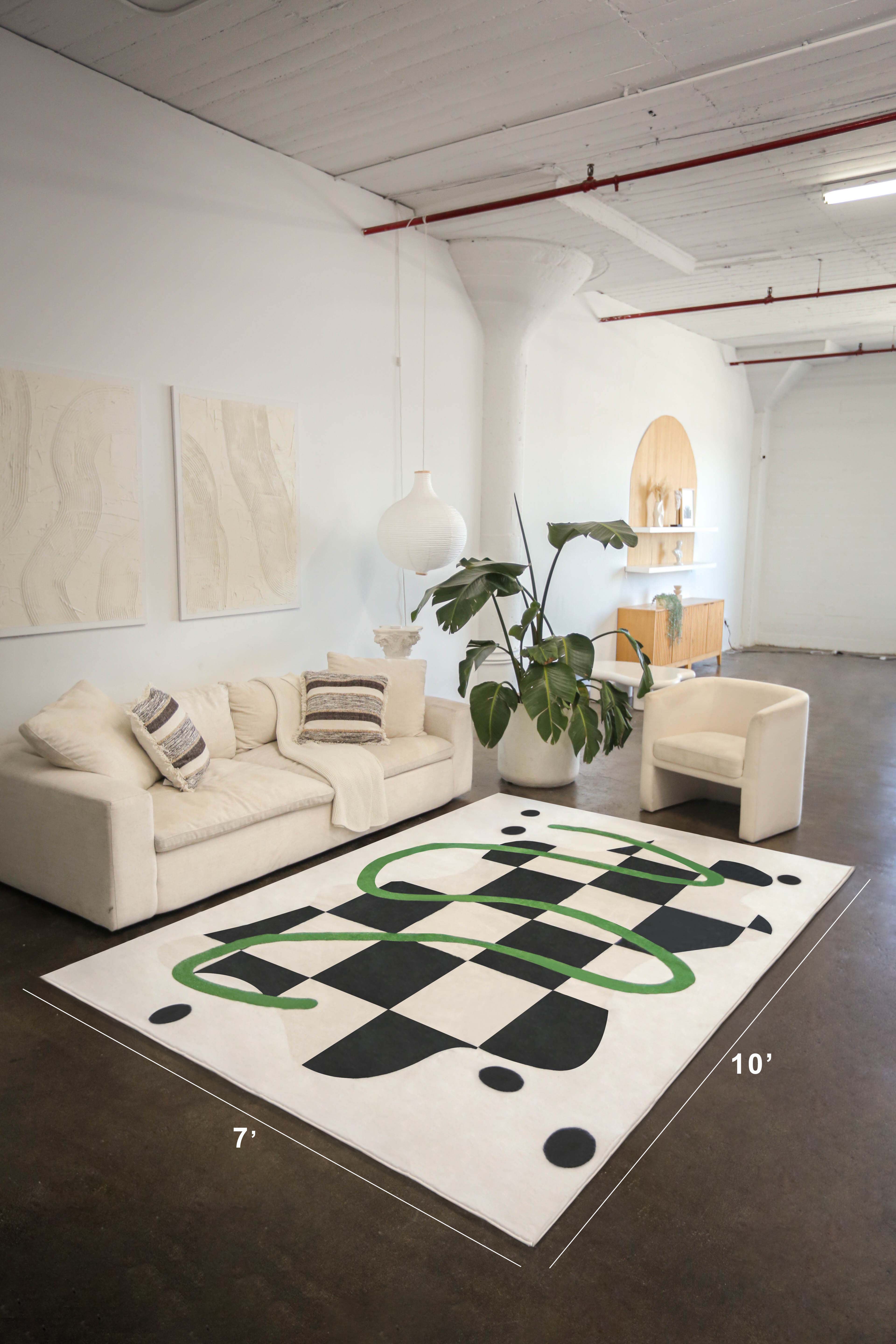 This stunning, pet-friendly piece is not just a rug; it's a statement of style and functionality. This Black and White Checkered Rug is a masterpiece of design and practicality. Crafted from high-grade synthetic materials, it boasts a captivating abstract pattern in a timeless black and white checkered style. Its sleek, rectangular shape makes it a versatile fit for any room, blending seamlessly with various interior decors.