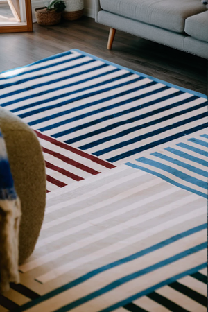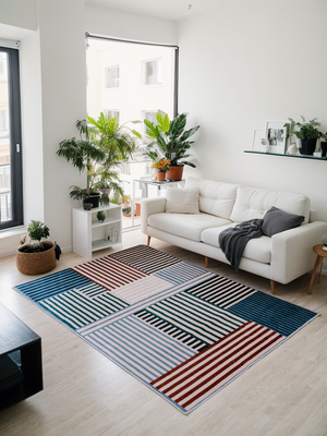 Add structure and style to your space with the Metro Stripe Modern Rug. Featuring a bold patchwork of linear stripes in earthy reds, deep greens, and navy blues, this contemporary design brings a balanced, urban feel to any room. Made with soft, high-density fibers and a non-slip backing, it combines comfort with practicality. The rug is ideal for living rooms, bedrooms, and lounges—especially in modern or minimalist interiors. Available in multiple sizes, including large custom options, it’s easy to find the perfect fit. Durable, stylish, and easy to maintain, it’s a smart choice for any modern home.