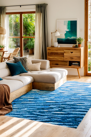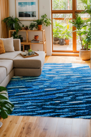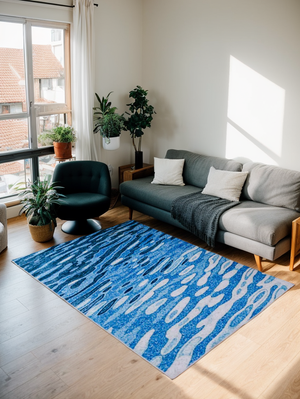 Blue Water Wavy Modern Area Rug