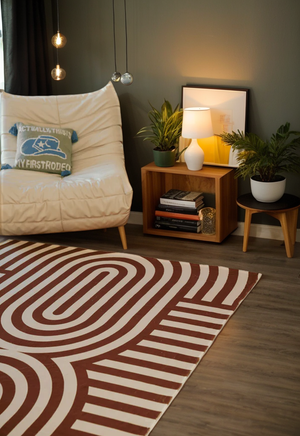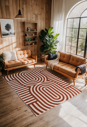 Introducing our pet-friendly washable non-slip Curvy Brown Stripes Design Area Rug: where style meets practicality. Crafted with convenience in mind, this rug combines modern elegance with functionality. Its sleek white stripes on a rich brown canvas bring contemporary charm to any space, while its washable and non-slip features ensure ease of maintenance and safety. Elevate your home decor with this versatile rug that offers both beauty and peace of mind.