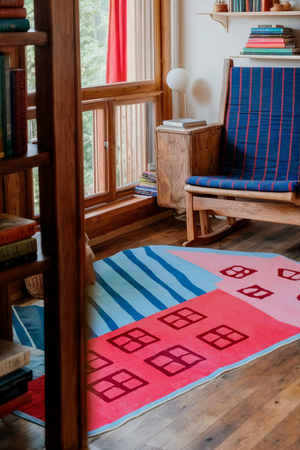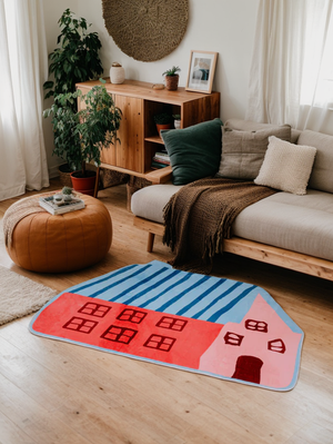 Bring warmth and creativity to your space with the Cozy Cottage Accent Rug. Featuring an original design of a charming little red house beneath a blue-striped sky, this soft and colorful rug adds a touch of whimsy to any bedroom, study, or living room. Made from plush, machine-washable fabric, it’s easy to care for and perfect for everyday use. Its compact 70x80 cm size fits snugly by your bed or under a desk, making it both decorative and practical. Whether you're studying, relaxing, or decorating your space, this rug delivers comfort with a playful personality.