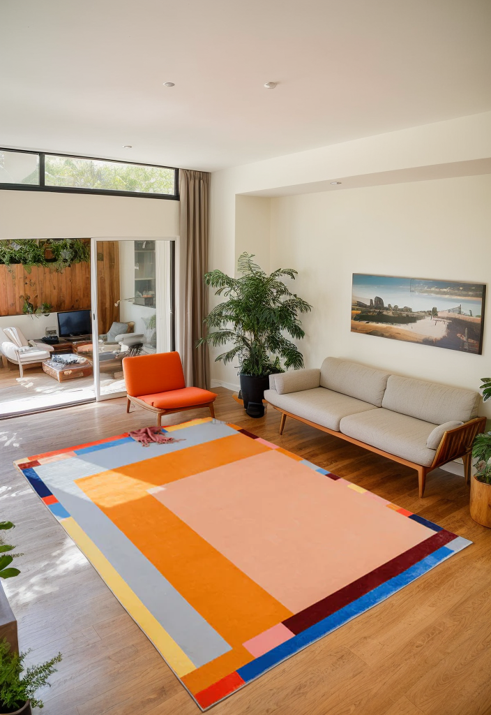 Infuse your space with vibrant warmth and contemporary flair with our Modern Geometric Print Rug. Featuring an array of rectangular blocks in varying sizes and colors, this rug offers a contemporary interpretation of geometric design. The blocks create a captivating focal point, radiating brightness and energy throughout the room. Crafted with precision and attention to detail, this rug seamlessly combines style and functionality. Available in two sizes to suit your space, it's perfect for adding a bold statement to your living room, bedroom, or any area in need of a modern touch. Elevate your decor with the captivating charm of our Modern Geometric Print Rug, and let its vibrant hues invigorate your home.