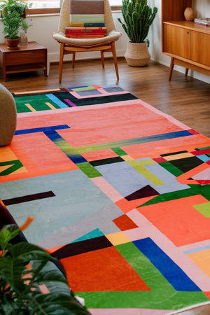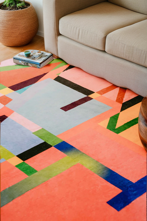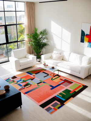 Elevate your interior with the Modern Geometry Luxe Rug—a bold, artistic statement piece for contemporary homes. Featuring a vibrant patchwork of geometric shapes in rich, saturated hues, this rug brings energy and sophistication to your living room, study, or bedroom. Crafted from ultra-soft, thickened fibers, it offers both comfort and durability. The anti-slip backing ensures safe placement on any floor, while its washable material makes maintenance easy. Available in large sizes (up to 300×450 cm), it's perfect for creating a focal point in mid-to-large spaces. Add color, texture, and modern elegance to your home with this premium floor rug.