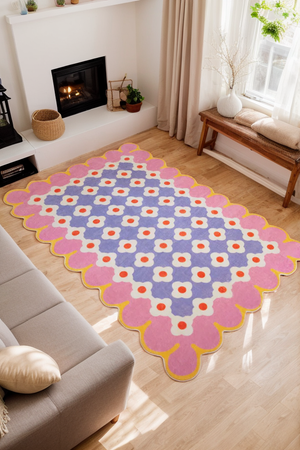 Bring cheerful vibes to your home with the Bloomy Petal Plush Rug. Featuring a vibrant floral pattern in soft pink, lavender, yellow, and white tones, this rug adds warmth and personality to any living space. Made from ultra-soft faux wool, it’s gentle on your feet and perfect for cozy lounging. Ideal for bedrooms, playrooms, or stylish lounges, its playful design brightens up any decor. Available in multiple sizes to suit your room’s needs. Whether you're reading, relaxing, or entertaining, this colorful rug creates a welcoming, stylish atmosphere you'll love coming home to.