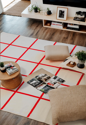 Elevate your space with the Soft Grid Faux Cashmere Rug, designed with a clean cream base and bold red check pattern. Made from thick, cozy faux cashmere fabric, it provides a soft, cloud-like feel underfoot—perfect for lounging in bedrooms, living rooms, or cozy corners. The minimalist grid design adds a touch of modern charm while staying timeless and versatile. Ideal for all seasons, this rug brings both comfort and visual warmth to your home. Available in multiple sizes, including large 200×300 cm format, it's a stylish and functional upgrade for your interior.
