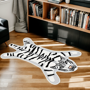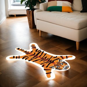 Bring a wild and whimsical touch to your home with this tiger-shaped faux fur rug. Designed to mimic a playful animal pelt, it features bold orange and black stripes with a soft, cozy texture perfect for living rooms, bedrooms, or kids' spaces. Crafted from high-quality faux wool, this rug is lightweight, foldable, and easy to clean—making it as functional as it is fun. Whether used as a statement piece under a coffee table or a quirky addition to a child’s room or reading corner, this rug adds character, warmth, and a sense of adventure to any space.